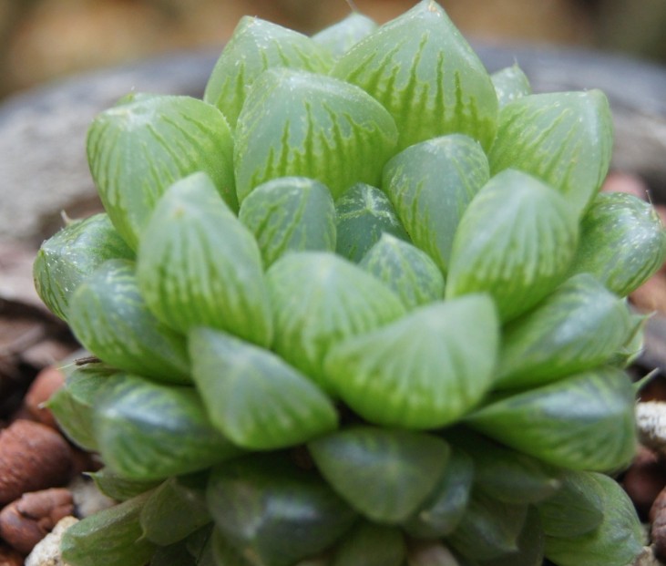 玉露(Haworthia obtusa var.pilifera)是百合科十二卷属植物中的“软叶系”品种。该系品种繁多,比较常见的有草玉露、玉章、姬玉露、大型玉露、毛玉露、有刺玉露等等。玉露植株玲珑小巧,种类丰富,叶色晶莹剔透,富于变化,如同有生命的工艺品,非常可爱,是近年来人气较旺的小型多肉植物品种之一。